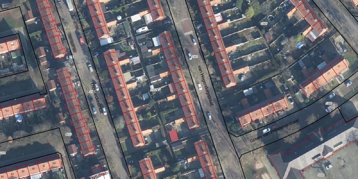 Het perceel waarop van Hogendorpstraat 49 staat heeft een oppervlakte van 9490 m². Dit is een zeer groot perceel. De perceeloppervlakte wordt geregistreerd door het Kadaster. Gedetailleerde informatie over de maten van dit perceel kunt u vinden in het rapport Kadastrale kaart met maatvoering van van Hogendorpstraat 49.