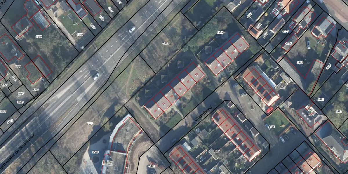Het perceel waarop Vingerhoed 55 staat heeft een oppervlakte van 2490 m². Dit is een zeer groot perceel. De perceeloppervlakte wordt geregistreerd door het Kadaster. Gedetailleerde informatie over de maten van dit perceel kunt u vinden in het rapport Kadastrale kaart met maatvoering van Vingerhoed 55.