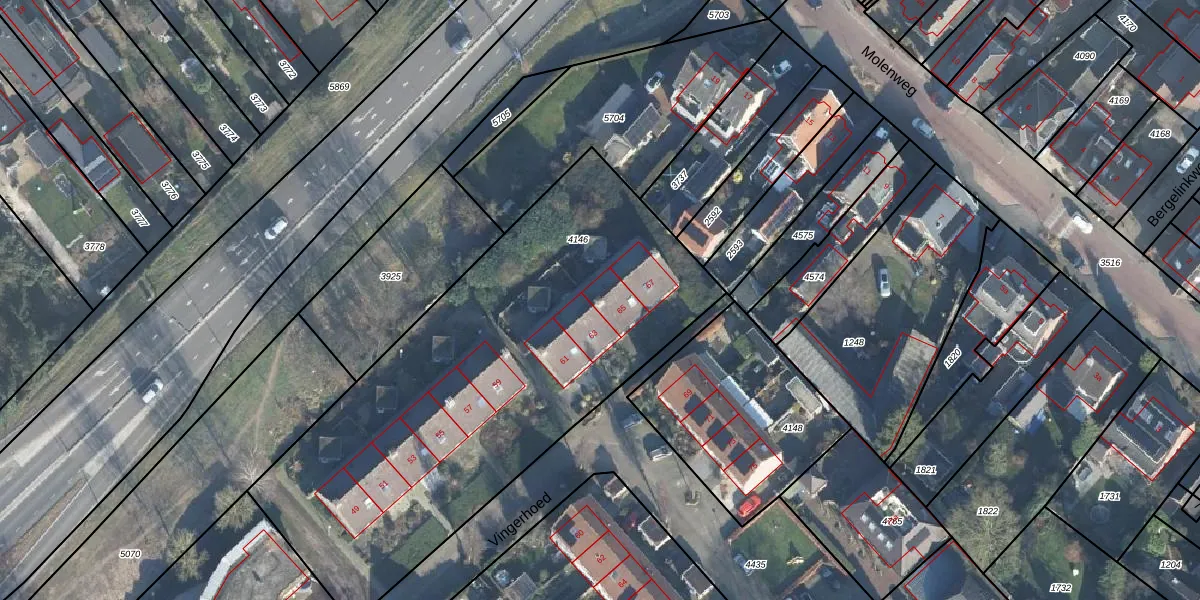 Het perceel waarop Vingerhoed 65 staat heeft een oppervlakte van 2490 m². Dit is een zeer groot perceel. De perceeloppervlakte wordt geregistreerd door het Kadaster. Gedetailleerde informatie over de maten van dit perceel kunt u vinden in het rapport Kadastrale kaart met maatvoering van Vingerhoed 65.