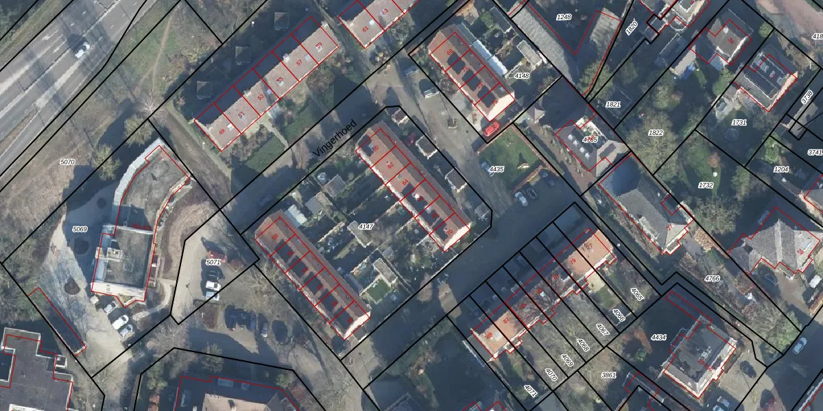 Het perceel waarop Vingerhoed 66 staat heeft een oppervlakte van 1985 m². Dit is een zeer groot perceel. De perceeloppervlakte wordt geregistreerd door het Kadaster. Gedetailleerde informatie over de maten van dit perceel kunt u vinden in het rapport Kadastrale kaart met maatvoering van Vingerhoed 66.