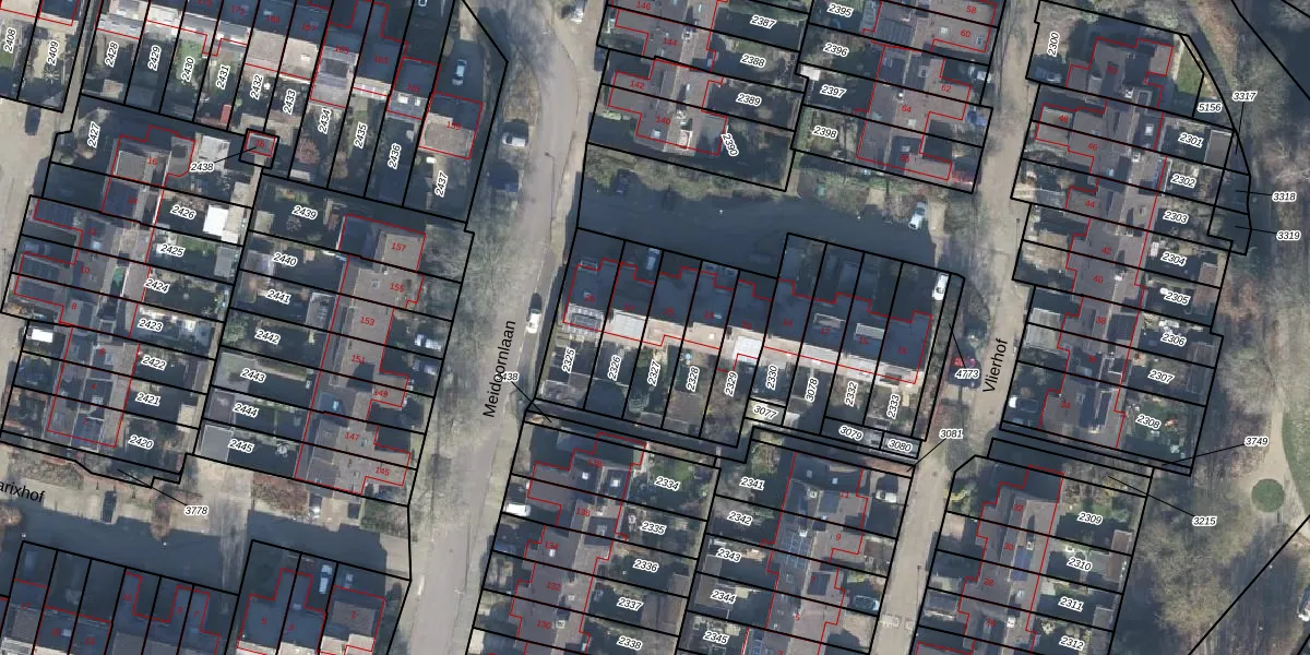 Gebruik de zoekbalk of klik op een perceel voor informatie over de adressen binnen dit perceel.