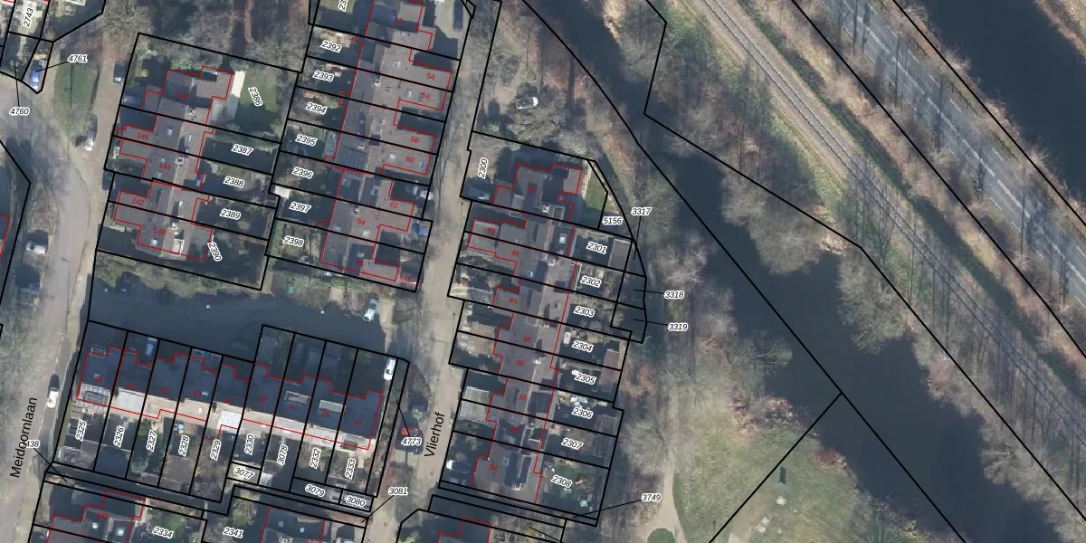 Gebruik de zoekbalk of klik op een perceel voor informatie over de adressen binnen dit perceel.
