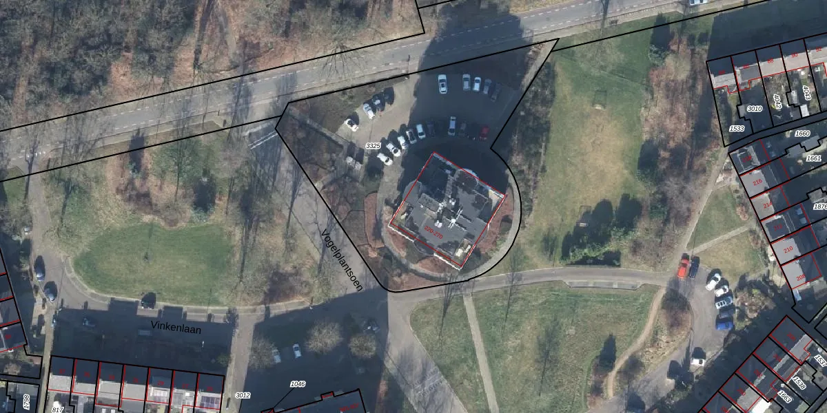 Het perceel waarop Vogelplantsoen 268 staat heeft een oppervlakte van 2410 m². Dit is een zeer groot perceel. De perceeloppervlakte wordt geregistreerd door het Kadaster. Gedetailleerde informatie over de maten van dit perceel kunt u vinden in het rapport Kadastrale kaart met maatvoering van Vogelplantsoen 268.
