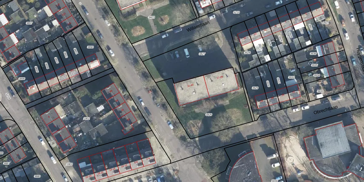 Willaertlaan 43 is gelegen op kadastraal perceel DRN00P3426. Deze kadastrale aanduiding is uniek en wordt gebruikt door het Kadaster om eigendomsrechten en andere zakelijke rechten vast te leggen. Het perceel maakt onderdeel uit van de kadastrale gemeente Dieren.