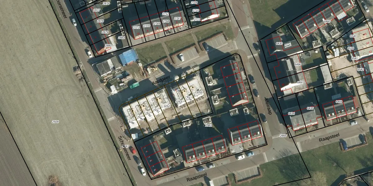 Gebruik de zoekbalk of klik op een perceel voor informatie over de adressen binnen dit perceel.