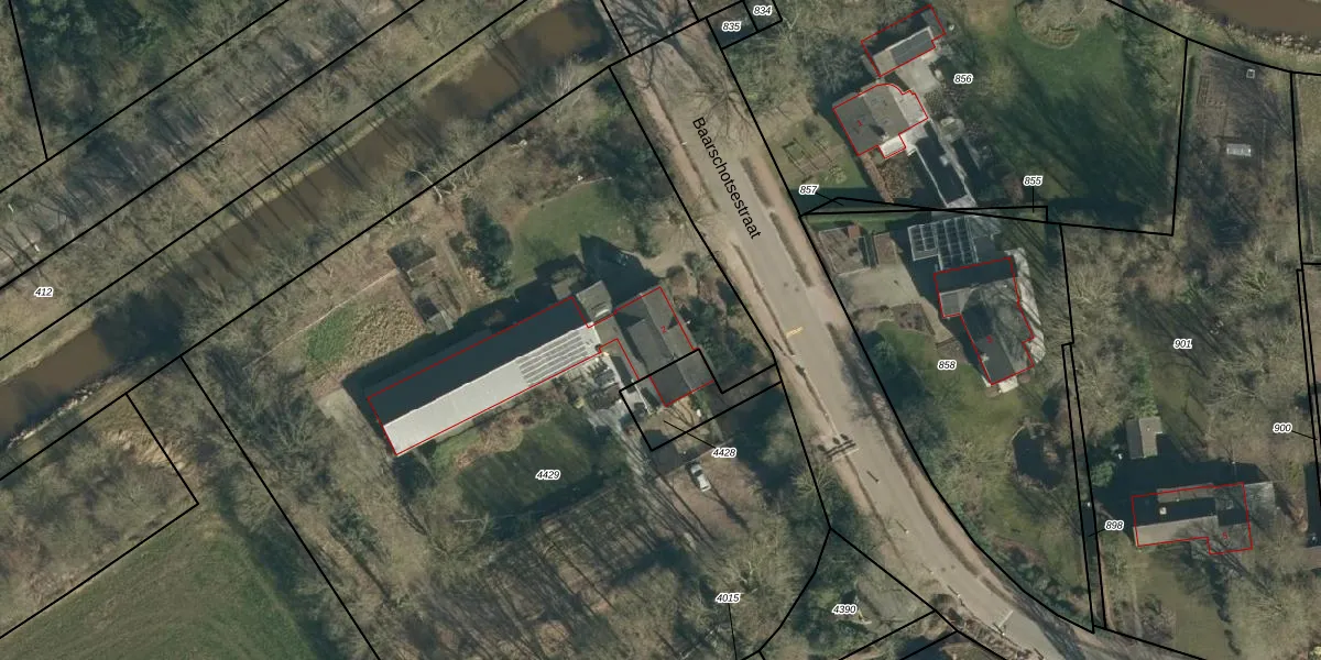 Het perceel waarop Baarschotsestraat 2 staat heeft een oppervlakte van 6170 m². Dit is een zeer groot perceel. De perceeloppervlakte wordt geregistreerd door het Kadaster. Gedetailleerde informatie over de maten van dit perceel kunt u vinden in het rapport Kadastrale kaart met maatvoering van Baarschotsestraat 2.