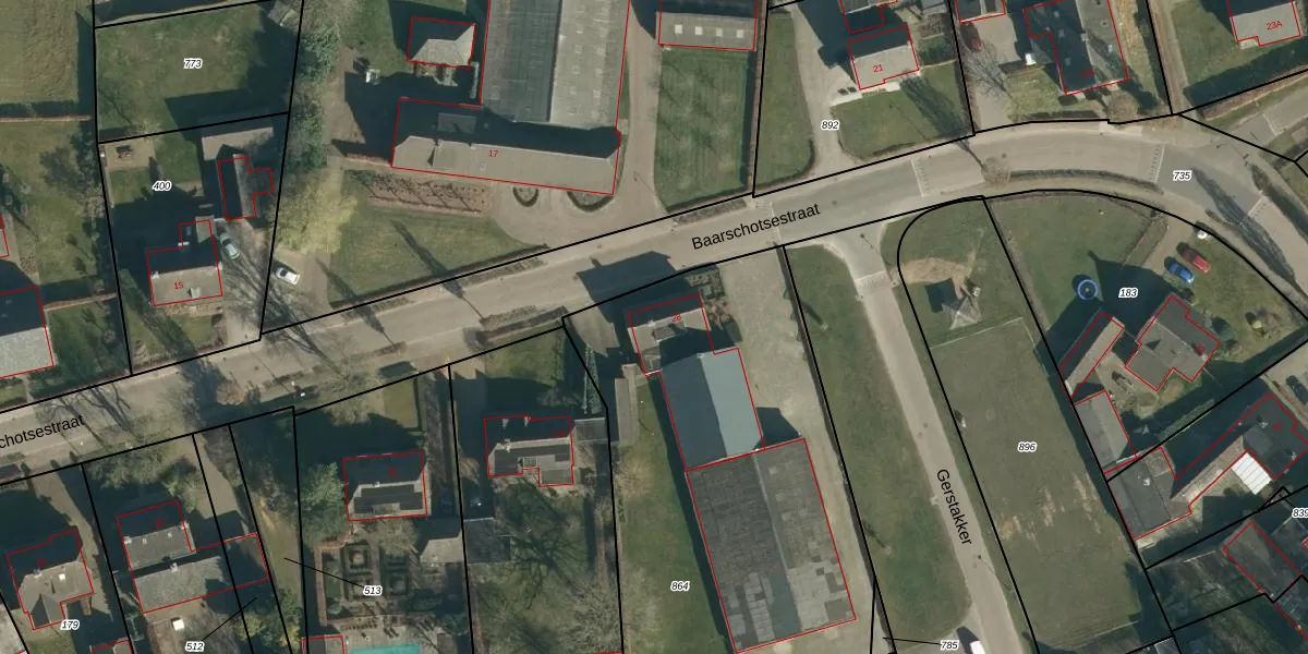 Het perceel waarop Baarschotsestraat 28 staat heeft een oppervlakte van 2552 m². Dit is een zeer groot perceel. De perceeloppervlakte wordt geregistreerd door het Kadaster. Gedetailleerde informatie over de maten van dit perceel kunt u vinden in het rapport Kadastrale kaart met maatvoering van Baarschotsestraat 28.
