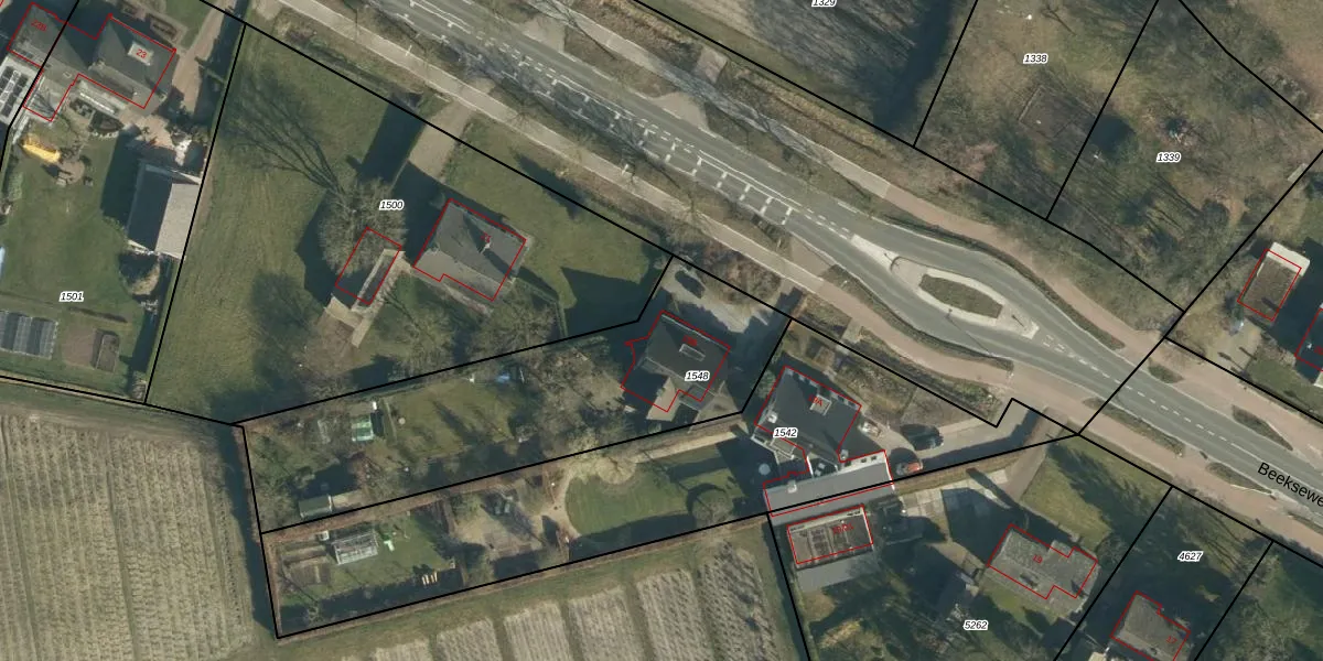 Het perceel waarop Beekseweg 19-B staat heeft een oppervlakte van 1455 m². Dit is een zeer groot perceel. De perceeloppervlakte wordt geregistreerd door het Kadaster. Gedetailleerde informatie over de maten van dit perceel kunt u vinden in het rapport Kadastrale kaart met maatvoering van Beekseweg 19-B.