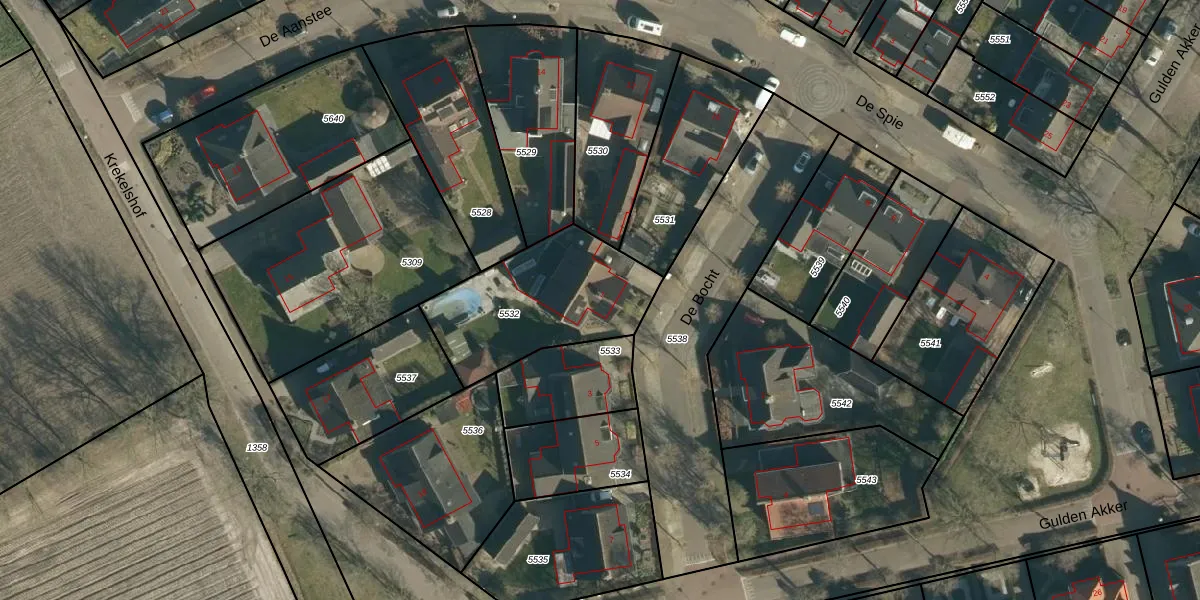 Het perceel waarop De Bocht 1 staat heeft een oppervlakte van 598 m². Dit is een groot perceel. De perceeloppervlakte wordt geregistreerd door het Kadaster. Gedetailleerde informatie over de maten van dit perceel kunt u vinden in het rapport Kadastrale kaart met maatvoering van De Bocht 1.