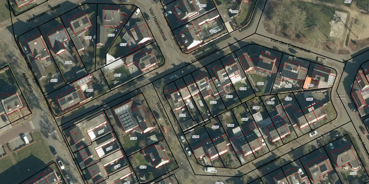 Gebruik de zoekbalk of klik op een perceel voor informatie over de adressen binnen dit perceel.