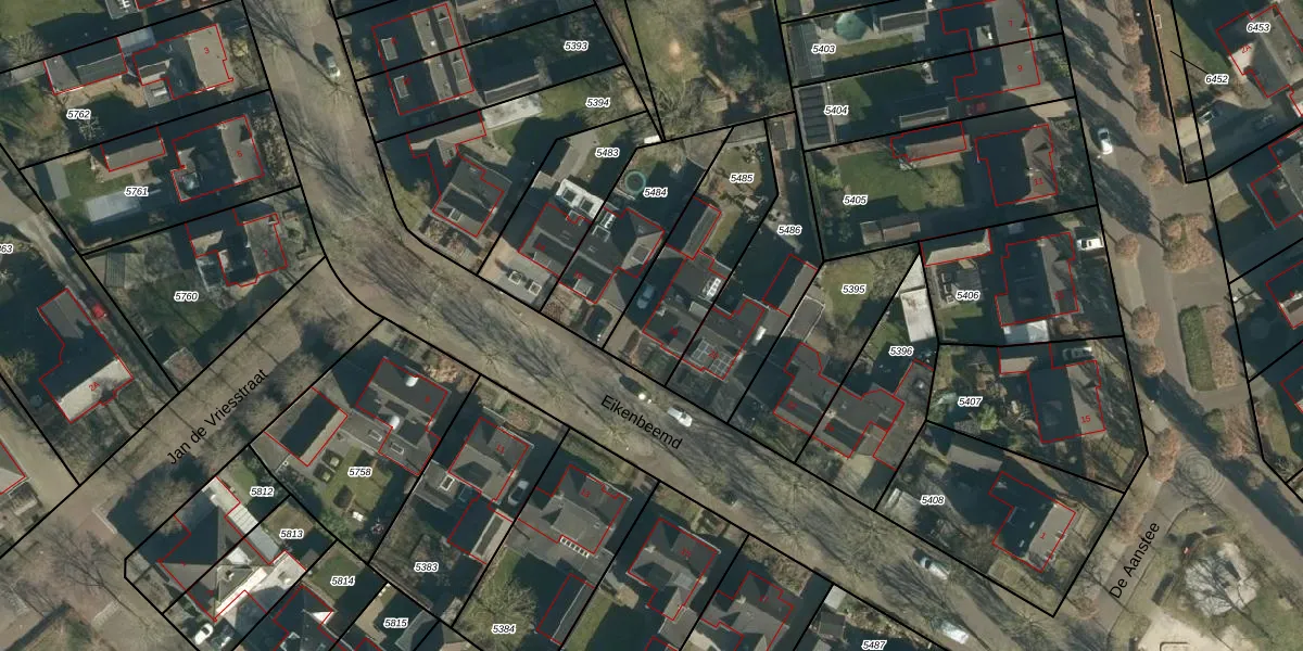Gebruik de zoekbalk of klik op een perceel voor informatie over de adressen binnen dit perceel.