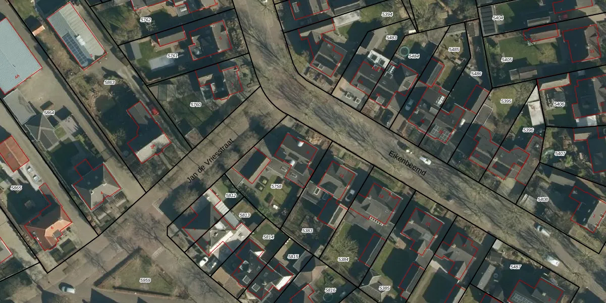 Het perceel waarop Eikenbeemd 9 staat heeft een oppervlakte van 676 m². Dit is een groot perceel. De perceeloppervlakte wordt geregistreerd door het Kadaster. Gedetailleerde informatie over de maten van dit perceel kunt u vinden in het rapport Kadastrale kaart met maatvoering van Eikenbeemd 9.