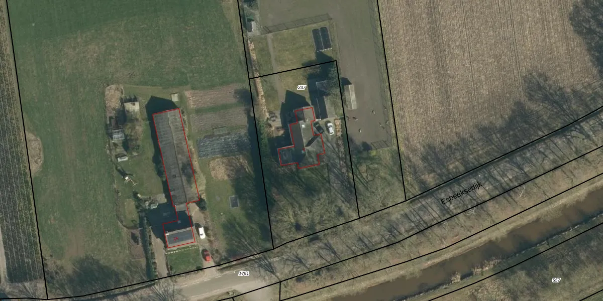 Het perceel waarop Esbeeksedijk 2 staat heeft een oppervlakte van 1620 m². Dit is een zeer groot perceel. De perceeloppervlakte wordt geregistreerd door het Kadaster. Gedetailleerde informatie over de maten van dit perceel kunt u vinden in het rapport Kadastrale kaart met maatvoering van Esbeeksedijk 2.