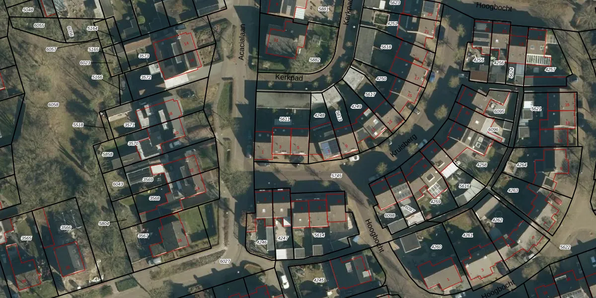 Het perceel waarop Kruisberg 5 staat heeft een oppervlakte van 435 m². Dit is een groot perceel. De perceeloppervlakte wordt geregistreerd door het Kadaster. Gedetailleerde informatie over de maten van dit perceel kunt u vinden in het rapport Kadastrale kaart met maatvoering van Kruisberg 5.
