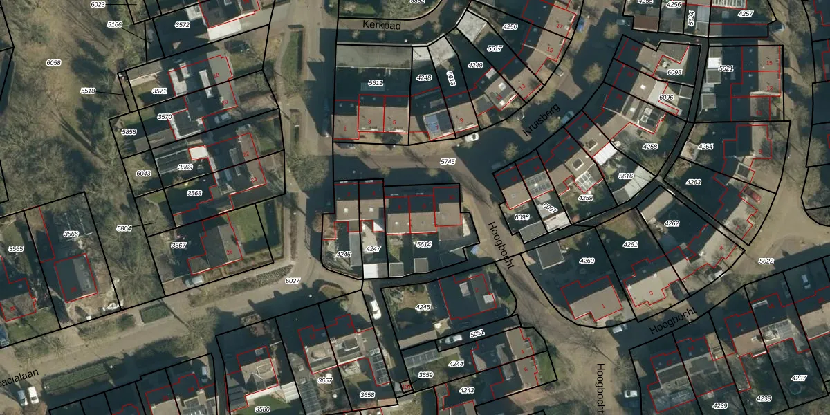 Het perceel waarop Kruisberg 8 staat heeft een oppervlakte van 410 m². Dit is een groot perceel. De perceeloppervlakte wordt geregistreerd door het Kadaster. Gedetailleerde informatie over de maten van dit perceel kunt u vinden in het rapport Kadastrale kaart met maatvoering van Kruisberg 8.