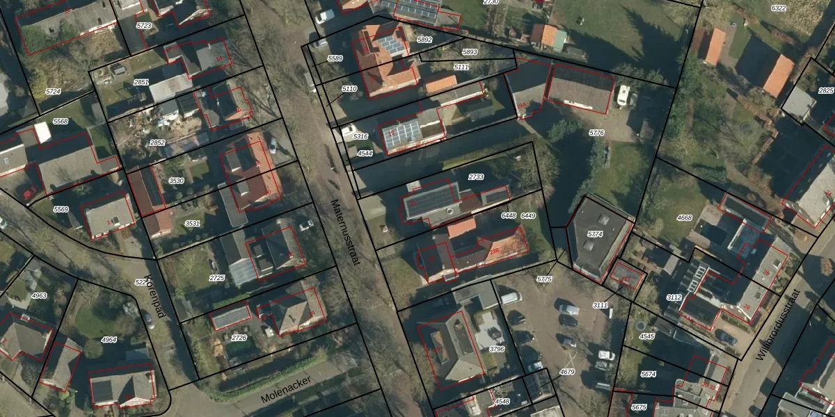 Het perceel waarop Maternusstraat 21 staat heeft een oppervlakte van 530 m². Dit is een groot perceel. De perceeloppervlakte wordt geregistreerd door het Kadaster. Gedetailleerde informatie over de maten van dit perceel kunt u vinden in het rapport Kadastrale kaart met maatvoering van Maternusstraat 21.