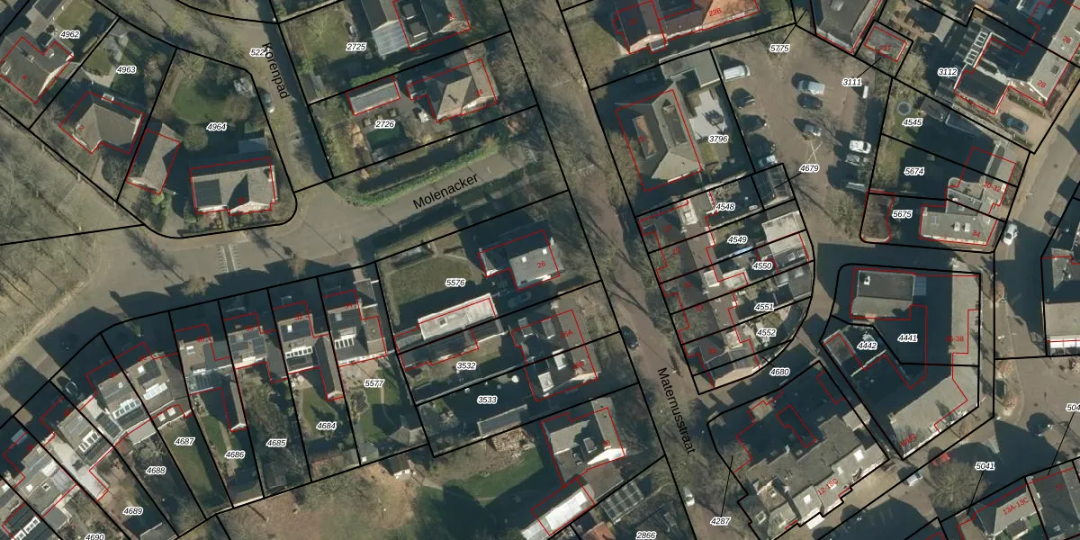 Het perceel waarop Maternusstraat 26 staat heeft een oppervlakte van 699 m². Dit is een groot perceel. De perceeloppervlakte wordt geregistreerd door het Kadaster. Gedetailleerde informatie over de maten van dit perceel kunt u vinden in het rapport Kadastrale kaart met maatvoering van Maternusstraat 26.