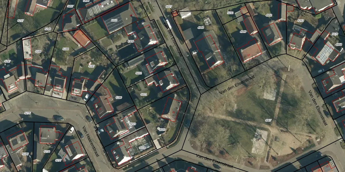 Het perceel waarop Van den Elsenstraat 33 staat heeft een oppervlakte van 449 m². Dit is een groot perceel. De perceeloppervlakte wordt geregistreerd door het Kadaster. Gedetailleerde informatie over de maten van dit perceel kunt u vinden in het rapport Kadastrale kaart met maatvoering van Van den Elsenstraat 33.