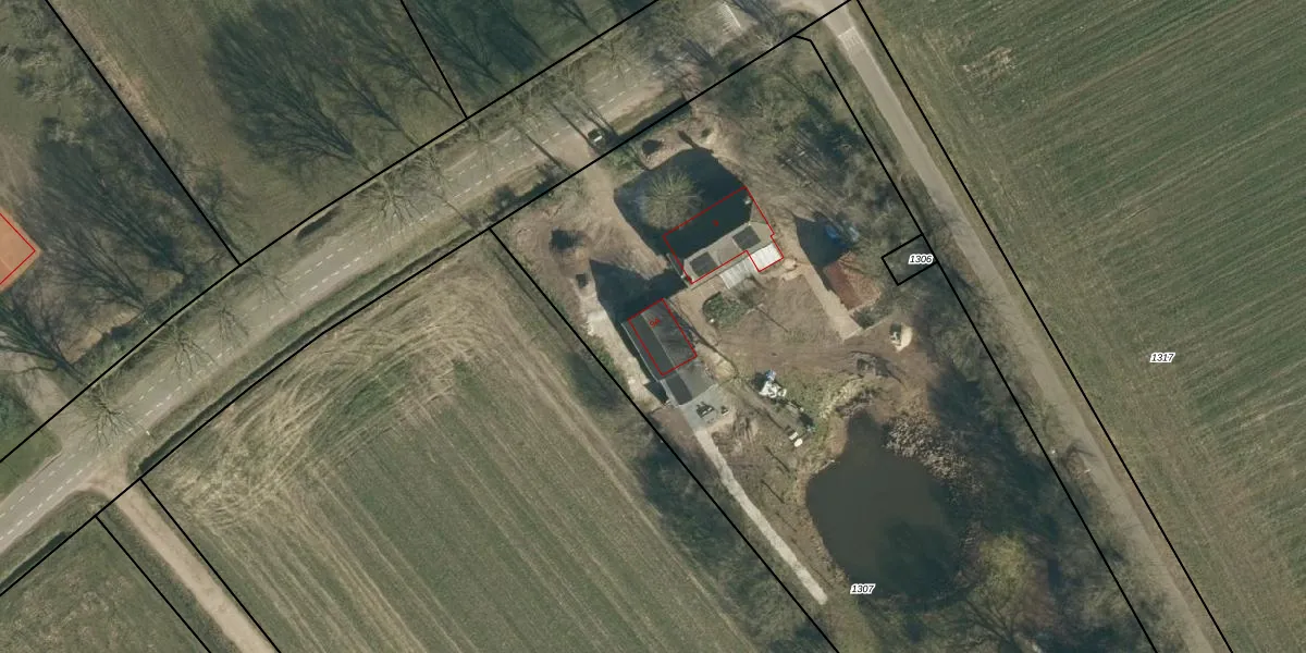 Het adres ligt op het perceel HVR00-Q-1307, dat zich in de kadastrale gemeente Hilvarenbeek bevindt. Het perceel is 5195 m² groot. Dat is kleiner dan de gemiddelde perceeloppervlakte in Hilvarenbeek, dat op 1,0 ha ligt. Het grootste perceel in de kadastrale gemeente is 3,92 km². Het kleinste perceel heeft een oppervlakte van 0 m². Er zijn 2 adressen aanwezig op het perceel. De huidige grenzen van het perceel zijn digitaal in de Basisregistratie Kadaster (BRK) geregistreerd op 17-06-2010.