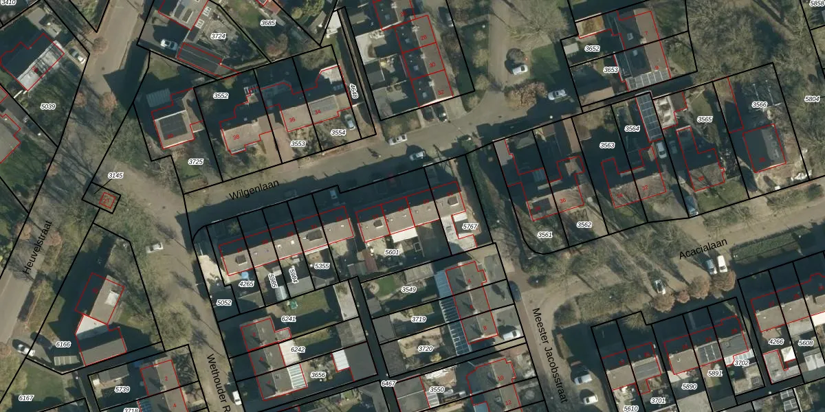 Het perceel waarop Wilgenlaan 13 staat heeft een oppervlakte van 626 m². Dit is een groot perceel. De perceeloppervlakte wordt geregistreerd door het Kadaster. Gedetailleerde informatie over de maten van dit perceel kunt u vinden in het rapport Kadastrale kaart met maatvoering van Wilgenlaan 13.