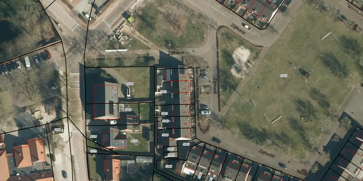 Het perceel waarop Zijthorst 43 staat heeft een oppervlakte van 435 m². Dit is een groot perceel. De perceeloppervlakte wordt geregistreerd door het Kadaster. Gedetailleerde informatie over de maten van dit perceel kunt u vinden in het rapport Kadastrale kaart met maatvoering van Zijthorst 43.