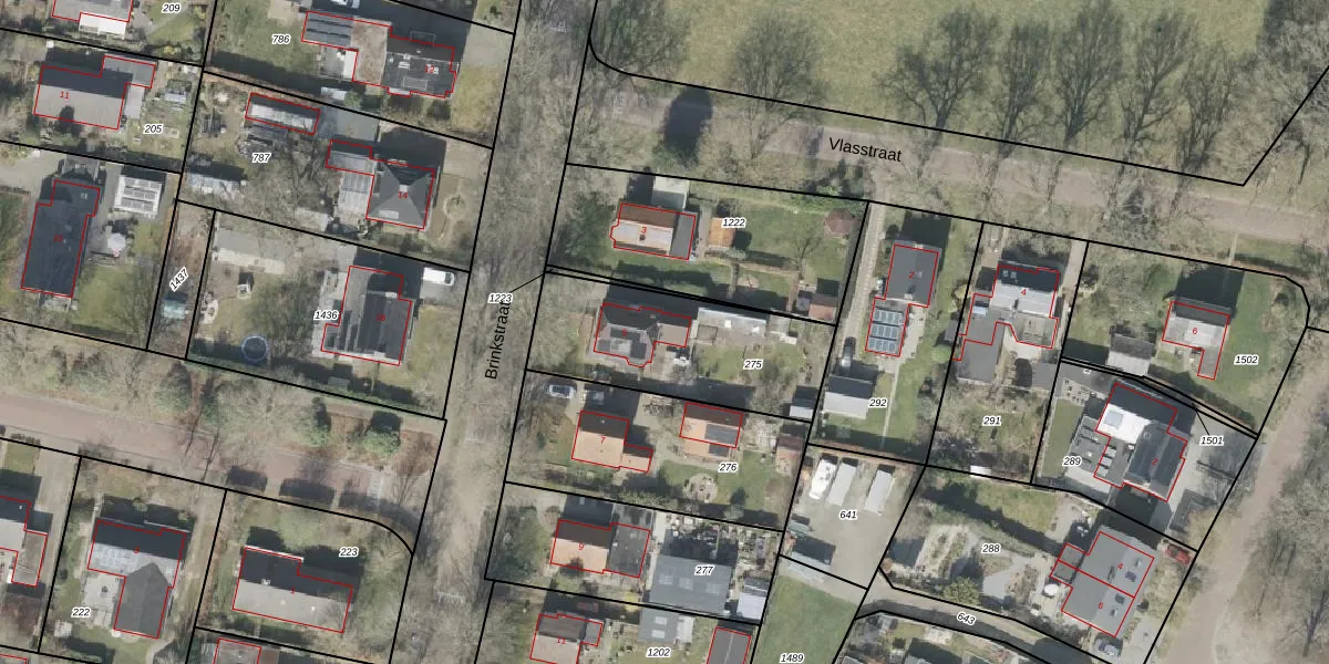 Het perceel waarop Brinkstraat 5 staat heeft een oppervlakte van 666 m². Dit is een groot perceel. De perceeloppervlakte wordt geregistreerd door het Kadaster. Gedetailleerde informatie over de maten van dit perceel kunt u vinden in het rapport Kadastrale kaart met maatvoering van Brinkstraat 5.