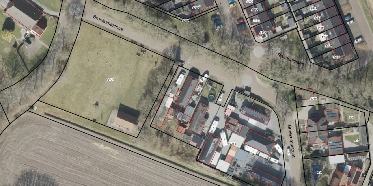 Het perceel waarop Broekemastraat 43 staat heeft een oppervlakte van 2760 m². Dit is een zeer groot perceel. De perceeloppervlakte wordt geregistreerd door het Kadaster. Gedetailleerde informatie over de maten van dit perceel kunt u vinden in het rapport Kadastrale kaart met maatvoering van Broekemastraat 43.