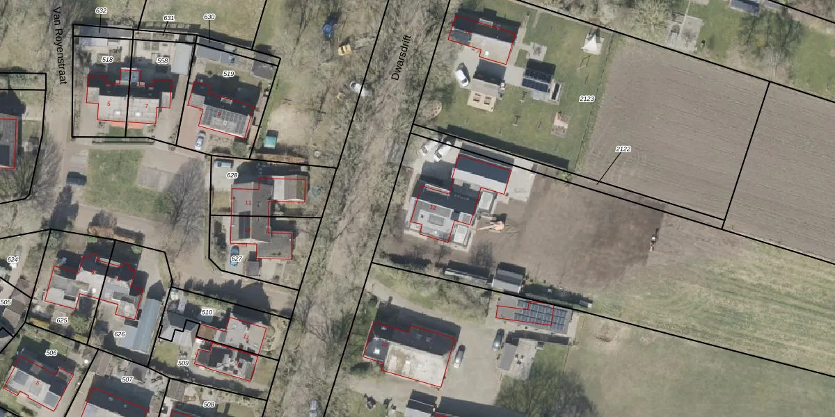 Dwarsdrift 12 is gelegen op kadastraal perceel DVR00I1322. Deze kadastrale aanduiding is uniek en wordt gebruikt door het Kadaster om eigendomsrechten en andere zakelijke rechten vast te leggen. Het perceel maakt onderdeel uit van de kadastrale gemeente Diever.