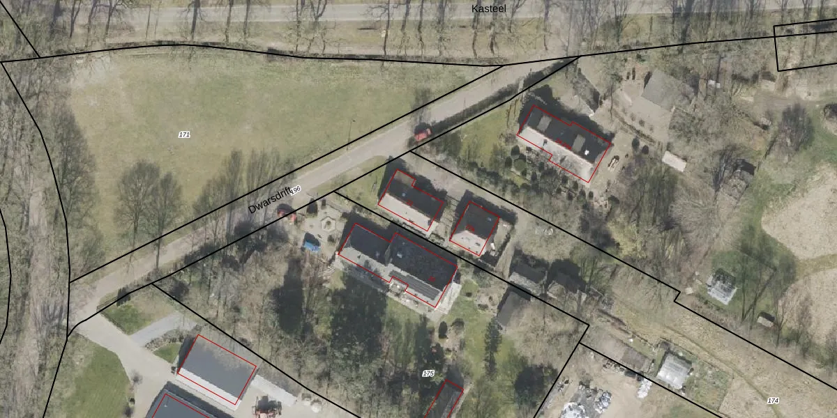 Dwarsdrift 22 is gelegen op kadastraal perceel DVR00I174. Deze kadastrale aanduiding is uniek en wordt gebruikt door het Kadaster om eigendomsrechten en andere zakelijke rechten vast te leggen. Het perceel maakt onderdeel uit van de kadastrale gemeente Diever.