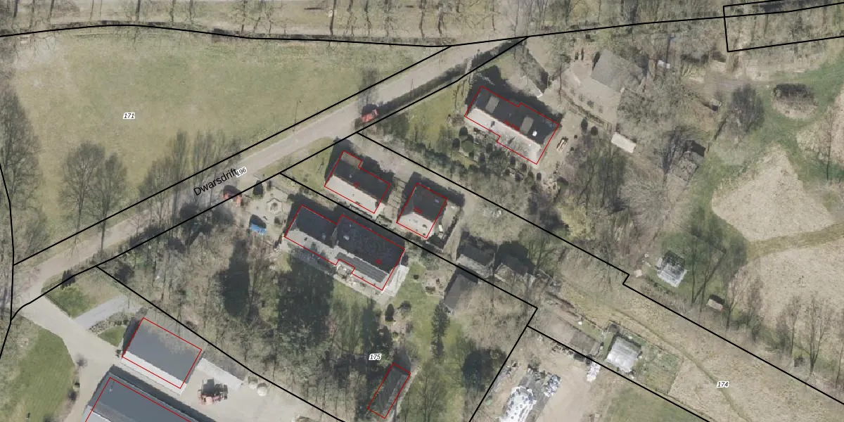 Dwarsdrift 22-a is gelegen op kadastraal perceel DVR00I174. Deze kadastrale aanduiding is uniek en wordt gebruikt door het Kadaster om eigendomsrechten en andere zakelijke rechten vast te leggen. Het perceel maakt onderdeel uit van de kadastrale gemeente Diever.