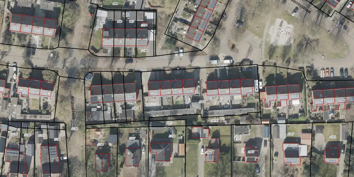 Het perceel waarop Gerritsstraat 34 staat heeft een oppervlakte van 1823 m². Dit is een zeer groot perceel. De perceeloppervlakte wordt geregistreerd door het Kadaster. Gedetailleerde informatie over de maten van dit perceel kunt u vinden in het rapport Kadastrale kaart met maatvoering van Gerritsstraat 34.