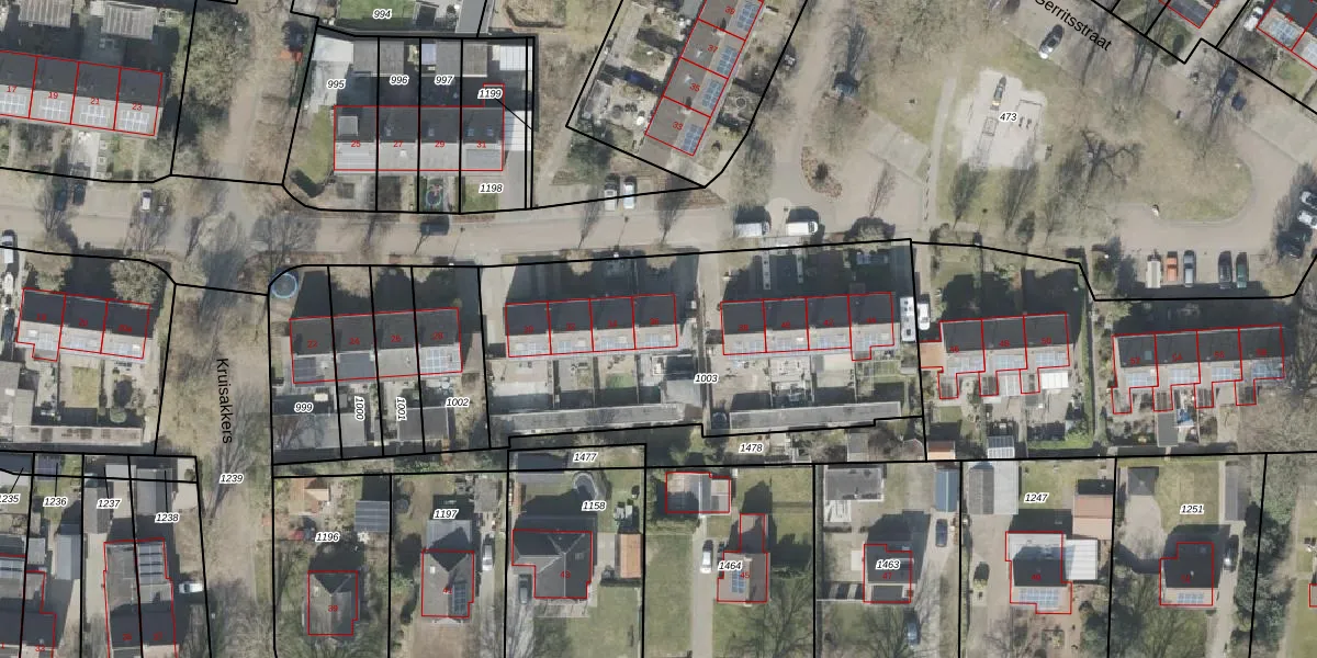 Het perceel waarop Gerritsstraat 36 staat heeft een oppervlakte van 1823 m². Dit is een zeer groot perceel. De perceeloppervlakte wordt geregistreerd door het Kadaster. Gedetailleerde informatie over de maten van dit perceel kunt u vinden in het rapport Kadastrale kaart met maatvoering van Gerritsstraat 36.