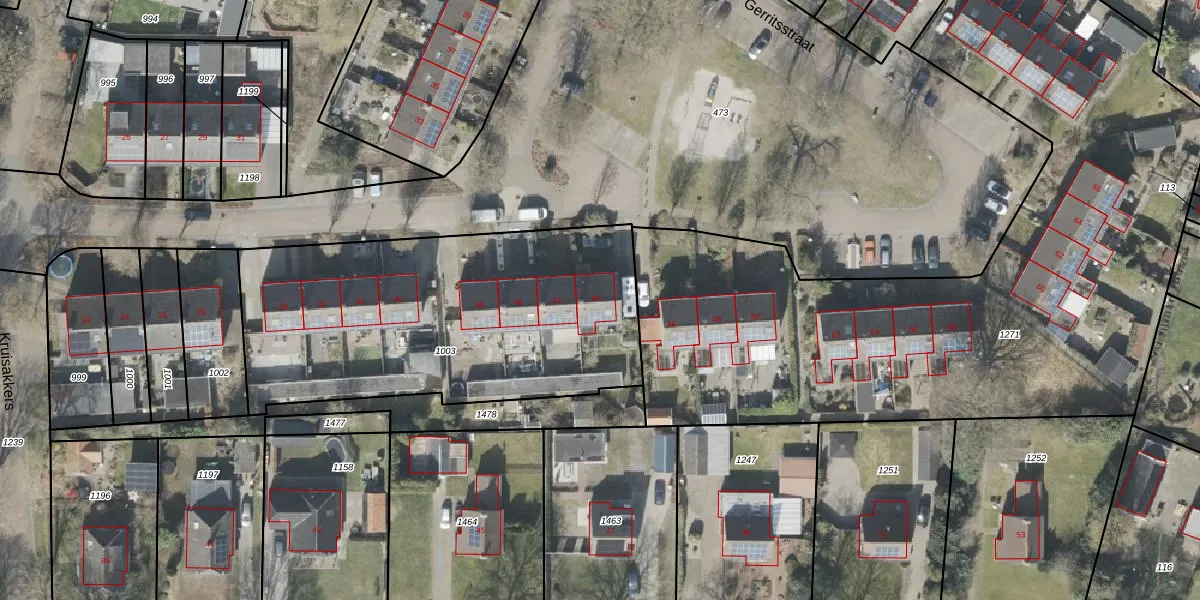 Het perceel waarop Gerritsstraat 44 staat heeft een oppervlakte van 1823 m². Dit is een zeer groot perceel. De perceeloppervlakte wordt geregistreerd door het Kadaster. Gedetailleerde informatie over de maten van dit perceel kunt u vinden in het rapport Kadastrale kaart met maatvoering van Gerritsstraat 44.