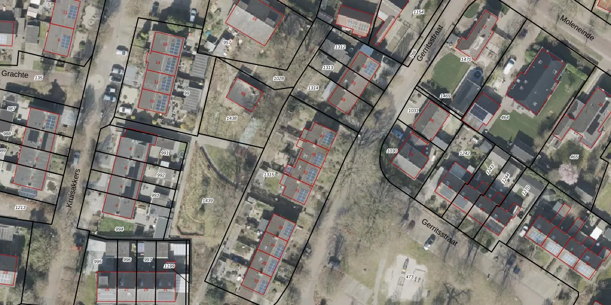Het perceel waarop Gerritsstraat 45 staat heeft een oppervlakte van 1692 m². Dit is een zeer groot perceel. De perceeloppervlakte wordt geregistreerd door het Kadaster. Gedetailleerde informatie over de maten van dit perceel kunt u vinden in het rapport Kadastrale kaart met maatvoering van Gerritsstraat 45.