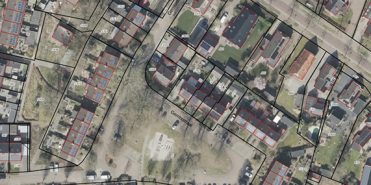 Het perceel waarop Gerritsstraat 82 staat heeft een oppervlakte van 355 m². Dit is een groot perceel. De perceeloppervlakte wordt geregistreerd door het Kadaster. Gedetailleerde informatie over de maten van dit perceel kunt u vinden in het rapport Kadastrale kaart met maatvoering van Gerritsstraat 82.