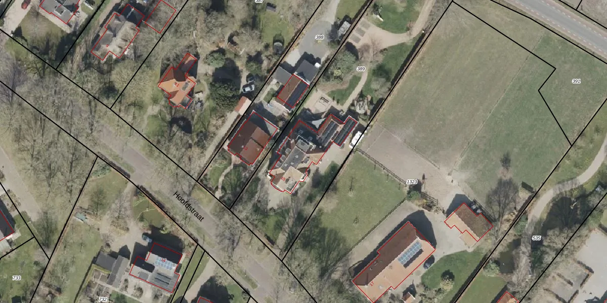 Het perceel waarop Hoofdstraat 15 staat heeft een oppervlakte van 2352 m². Dit is een zeer groot perceel. De perceeloppervlakte wordt geregistreerd door het Kadaster. Gedetailleerde informatie over de maten van dit perceel kunt u vinden in het rapport Kadastrale kaart met maatvoering van Hoofdstraat 15.