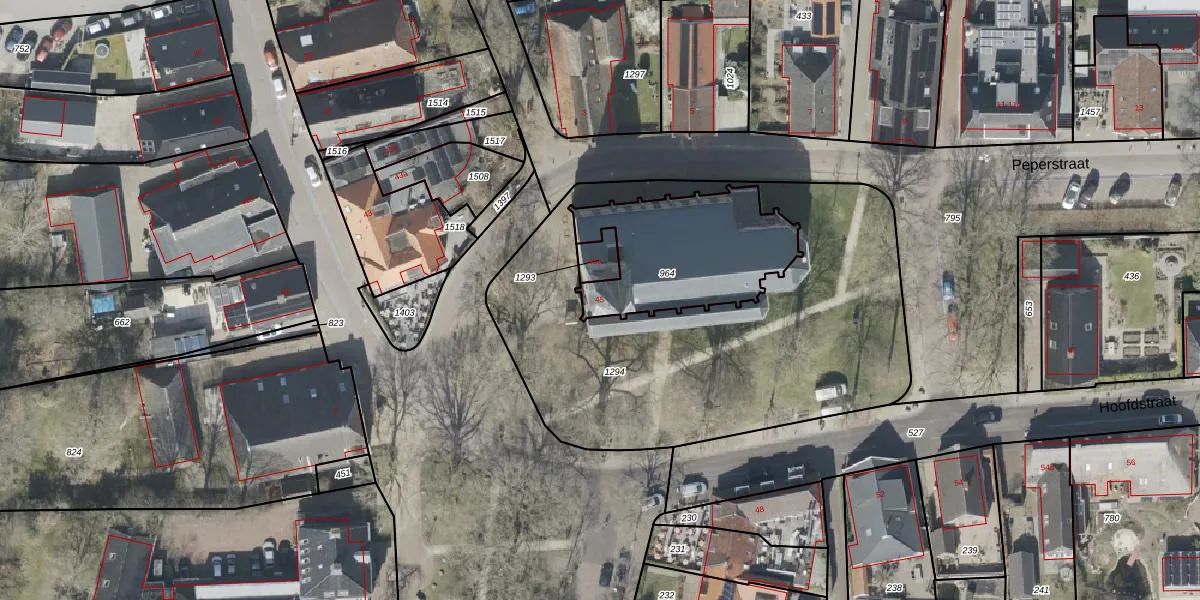 Het perceel waarop Hoofdstraat 45 staat heeft een oppervlakte van 575 m². Dit is een groot perceel. De perceeloppervlakte wordt geregistreerd door het Kadaster. Gedetailleerde informatie over de maten van dit perceel kunt u vinden in het rapport Kadastrale kaart met maatvoering van Hoofdstraat 45.