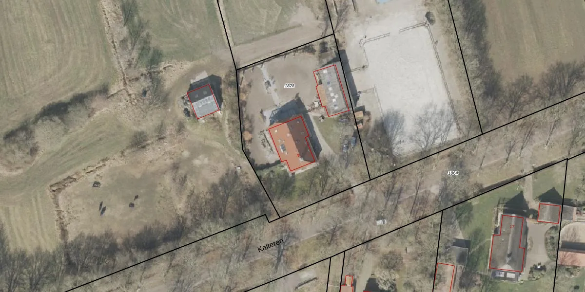 Het perceel waarop Kalteren 8 staat heeft een oppervlakte van 1940 m². Dit is een zeer groot perceel. De perceeloppervlakte wordt geregistreerd door het Kadaster. Gedetailleerde informatie over de maten van dit perceel kunt u vinden in het rapport Kadastrale kaart met maatvoering van Kalteren 8.