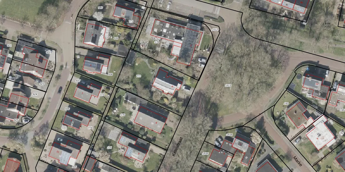 Het perceel waarop Ketelstraat 4 staat heeft een oppervlakte van 1000 m². Dit is een zeer groot perceel. De perceeloppervlakte wordt geregistreerd door het Kadaster. Gedetailleerde informatie over de maten van dit perceel kunt u vinden in het rapport Kadastrale kaart met maatvoering van Ketelstraat 4.