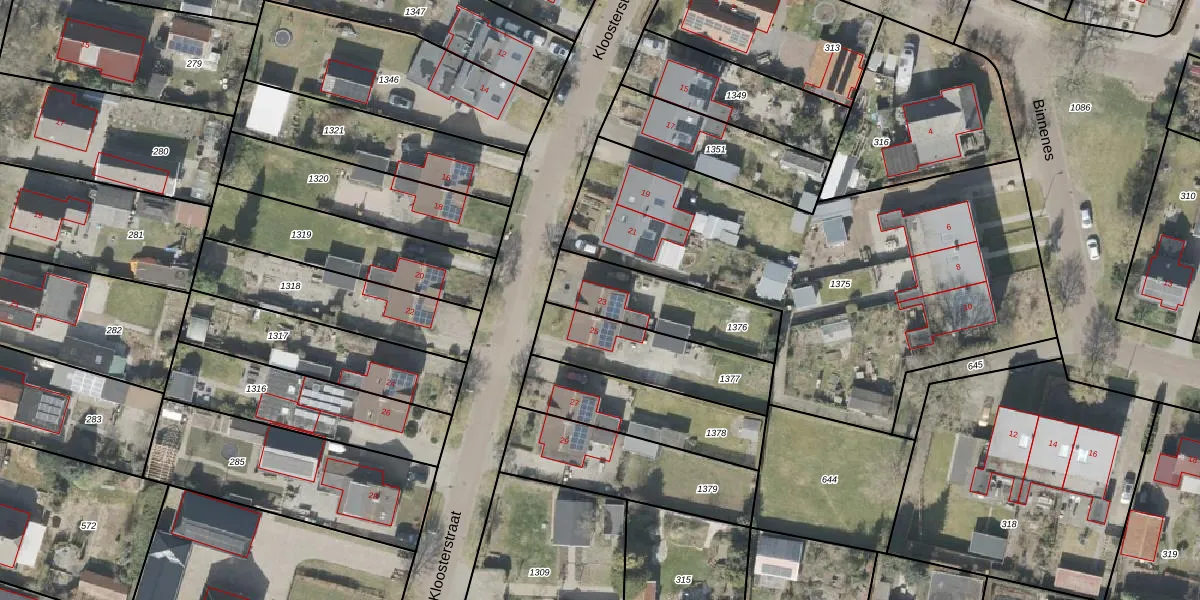 Het perceel waarop Kloosterstraat 23 staat heeft een oppervlakte van 350 m². Dit is een groot perceel. De perceeloppervlakte wordt geregistreerd door het Kadaster. Gedetailleerde informatie over de maten van dit perceel kunt u vinden in het rapport Kadastrale kaart met maatvoering van Kloosterstraat 23.