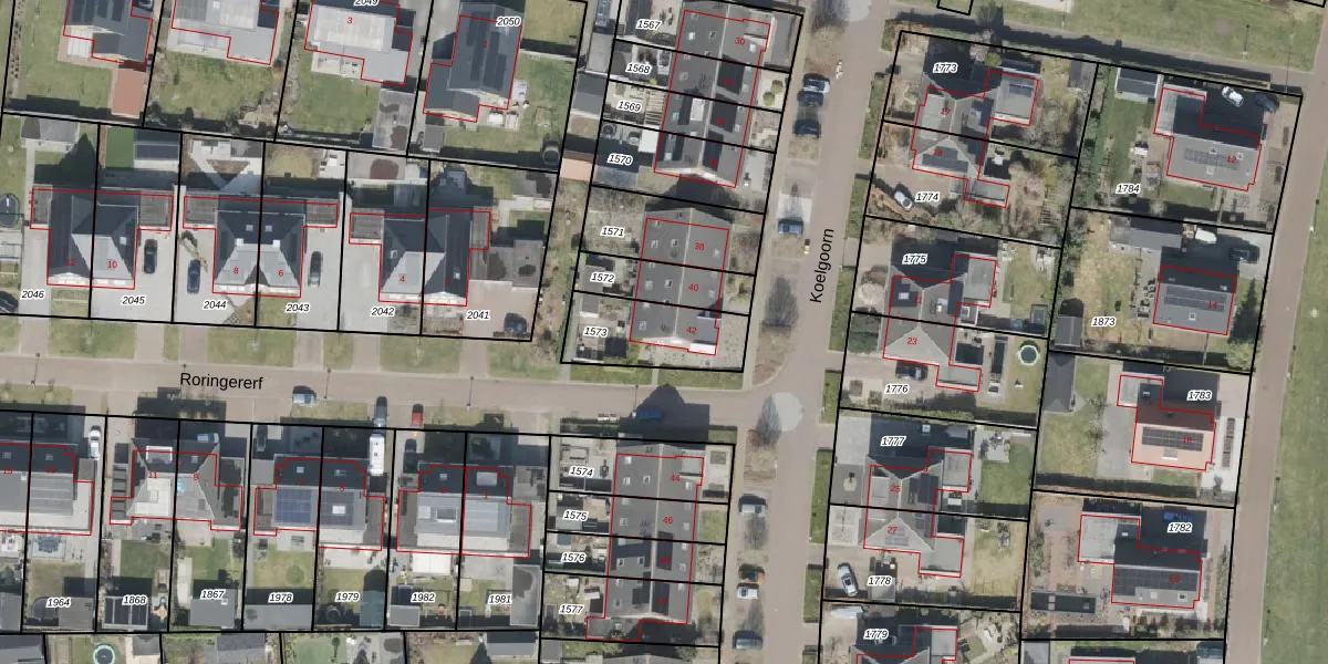 Het perceel waarop Koelgoorn 42 staat heeft een oppervlakte van 263 m². Dit is een middelgroot perceel. De perceeloppervlakte wordt geregistreerd door het Kadaster. Gedetailleerde informatie over de maten van dit perceel kunt u vinden in het rapport Kadastrale kaart met maatvoering van Koelgoorn 42.