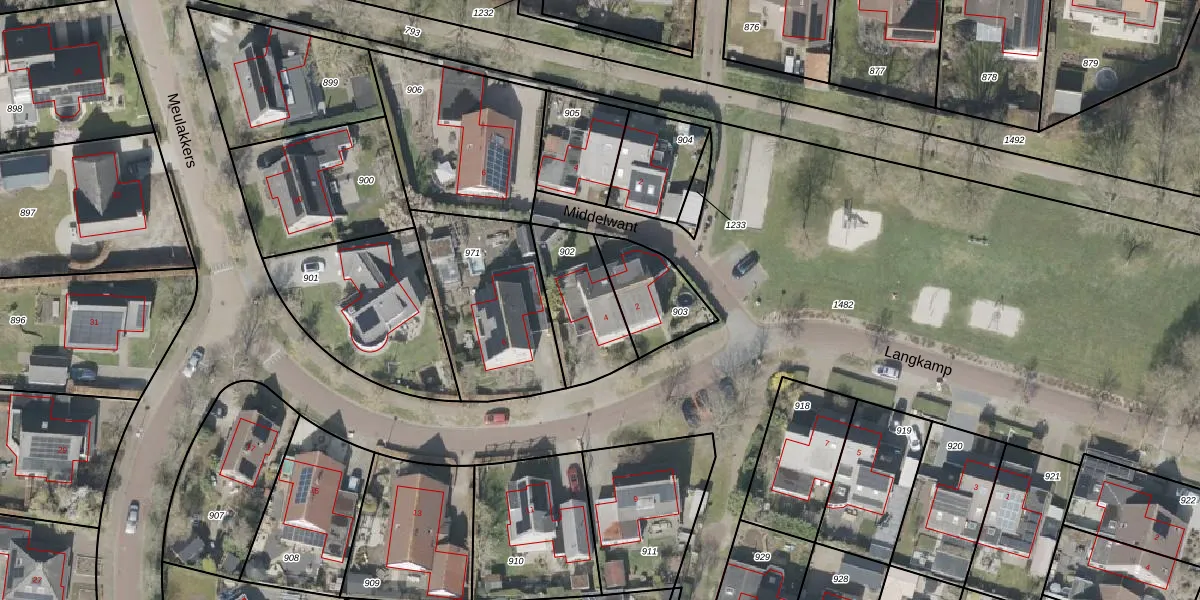 Het perceel waarop Langkamp 4 staat heeft een oppervlakte van 289 m². Dit is een middelgroot perceel. De perceeloppervlakte wordt geregistreerd door het Kadaster. Gedetailleerde informatie over de maten van dit perceel kunt u vinden in het rapport Kadastrale kaart met maatvoering van Langkamp 4.