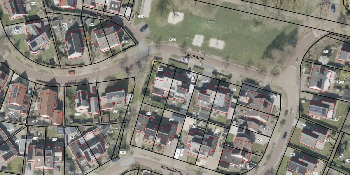 Het perceel waarop Langkamp 5 staat heeft een oppervlakte van 325 m². Dit is een groot perceel. De perceeloppervlakte wordt geregistreerd door het Kadaster. Gedetailleerde informatie over de maten van dit perceel kunt u vinden in het rapport Kadastrale kaart met maatvoering van Langkamp 5.