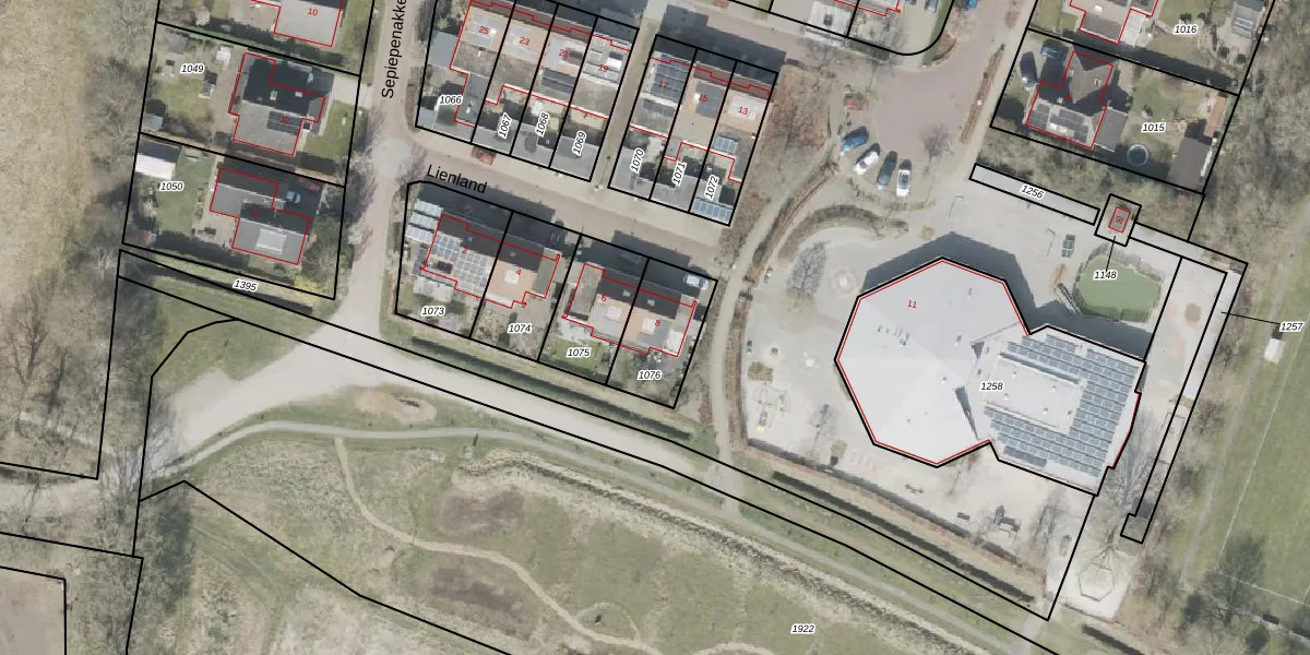 Gebruik de zoekbalk of klik op een perceel voor informatie over de adressen binnen dit perceel.