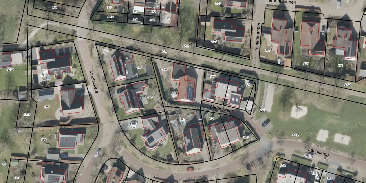 Het perceel waarop Middelwant 6 staat heeft een oppervlakte van 595 m². Dit is een groot perceel. De perceeloppervlakte wordt geregistreerd door het Kadaster. Gedetailleerde informatie over de maten van dit perceel kunt u vinden in het rapport Kadastrale kaart met maatvoering van Middelwant 6.