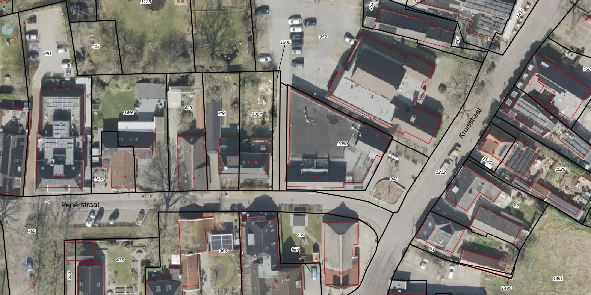 Het perceel waarop Peperstraat 23 staat heeft een oppervlakte van 885 m². Dit is een groot perceel. De perceeloppervlakte wordt geregistreerd door het Kadaster. Gedetailleerde informatie over de maten van dit perceel kunt u vinden in het rapport Kadastrale kaart met maatvoering van Peperstraat 23.