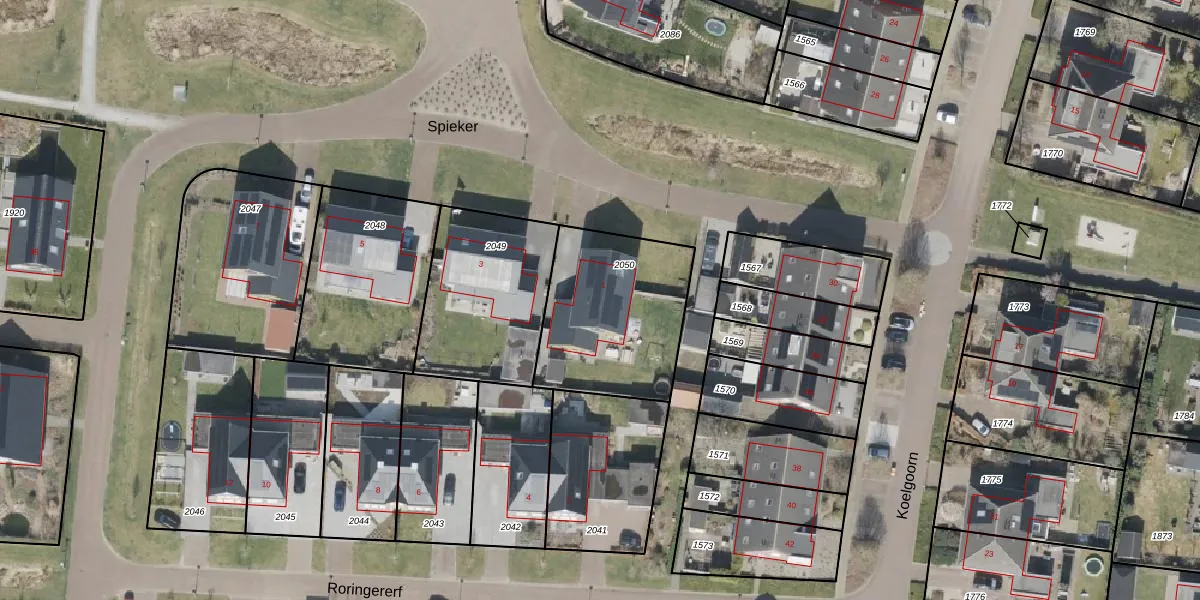 Het perceel waarop Spieker 1 staat heeft een oppervlakte van 614 m². Dit is een groot perceel. De perceeloppervlakte wordt geregistreerd door het Kadaster. Gedetailleerde informatie over de maten van dit perceel kunt u vinden in het rapport Kadastrale kaart met maatvoering van Spieker 1.