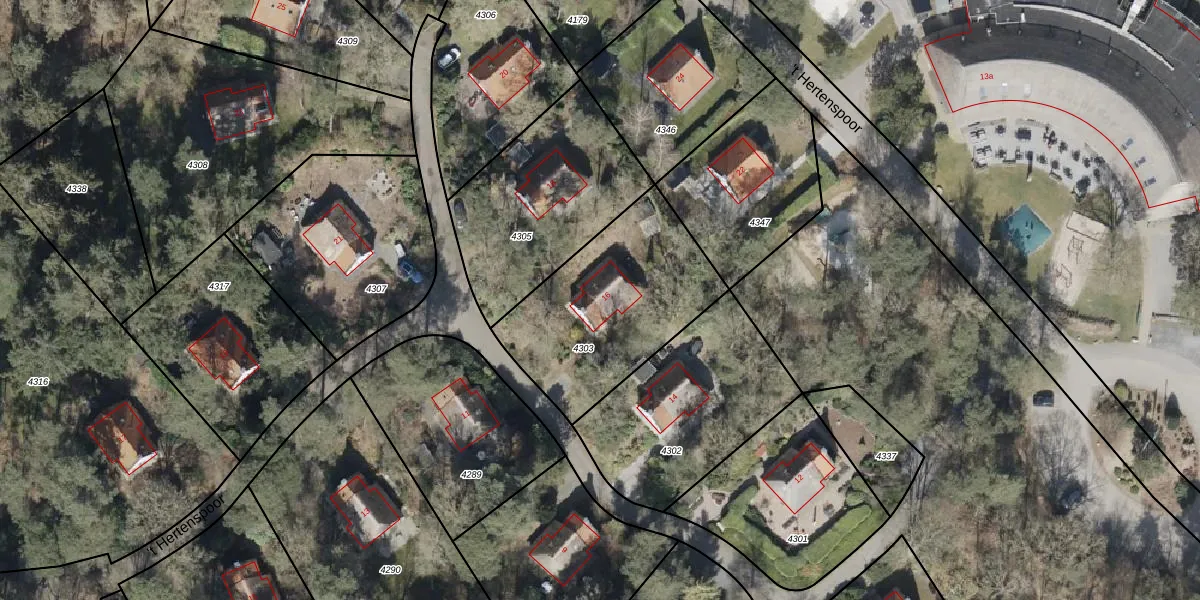 't Hertenspoor 16 is gelegen op kadastraal perceel DVR00B4303. Deze kadastrale aanduiding is uniek en wordt gebruikt door het Kadaster om eigendomsrechten en andere zakelijke rechten vast te leggen. Het perceel maakt onderdeel uit van de kadastrale gemeente Diever.