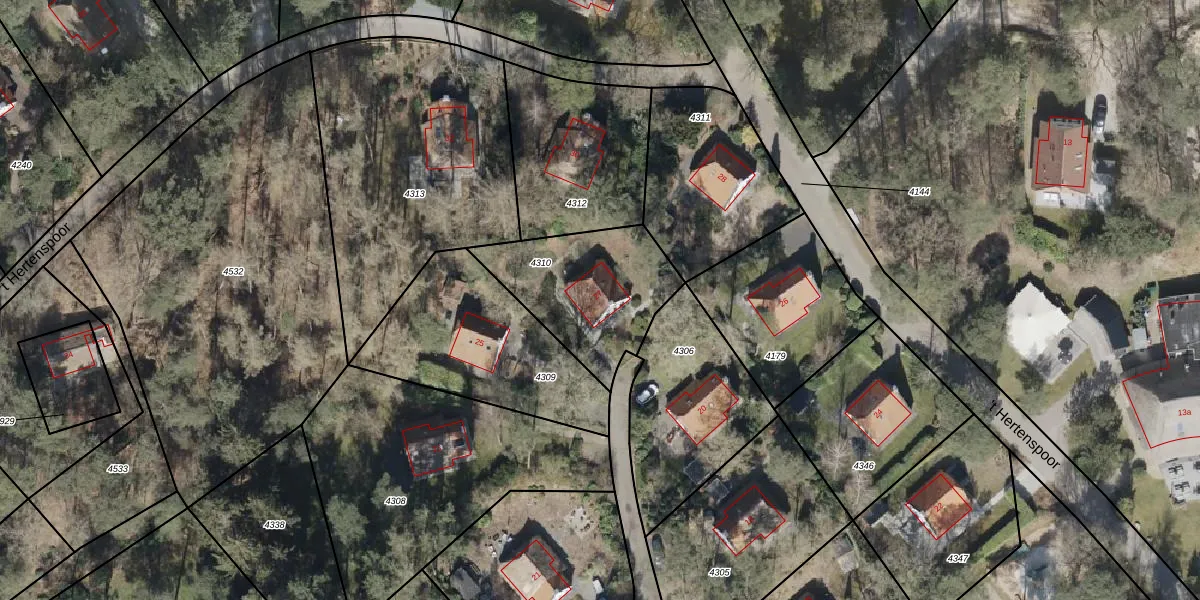 't Hertenspoor 27 is gelegen op kadastraal perceel DVR00B4310. Deze kadastrale aanduiding is uniek en wordt gebruikt door het Kadaster om eigendomsrechten en andere zakelijke rechten vast te leggen. Het perceel maakt onderdeel uit van de kadastrale gemeente Diever.