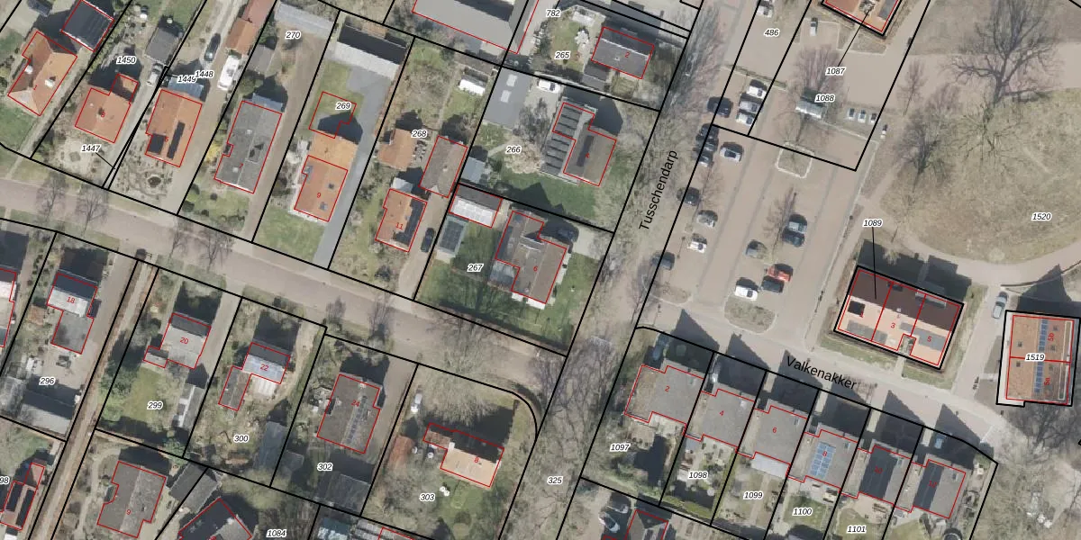 Het perceel waarop Tusschendarp 6 staat heeft een oppervlakte van 723 m². Dit is een groot perceel. De perceeloppervlakte wordt geregistreerd door het Kadaster. Gedetailleerde informatie over de maten van dit perceel kunt u vinden in het rapport Kadastrale kaart met maatvoering van Tusschendarp 6.